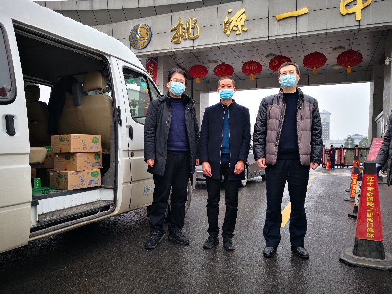 同日,高148班校友、湖南省天添物流有限公司执行董事兼总经理王云飞率其公司股东一行3人来到桃源一中,为学校捐赠84消毒液500kg、洗手液120kg,学校纪委书记杨义华代表学校接受捐赠。杨义华书记感谢湖南省天添物流有限公司对桃源一中疫情防控工作的巨大支持,王云飞总经理深情地说:“湖南省天添物流有限公司作为一个桃源人民的企业,在成长的过程中得到百万桃源人民的支持,在疫情面前,湖南省天添物流有限公司将和桃源人民一起共战疫情、共克时坚。而自己作为桃源一中校友,能够为母校的疫情防控尽一点绵薄之力是分内之事,应尽之责”。湖南省天添物流有限公司还将向文昌中学和桃源三中捐赠一批防控物资。