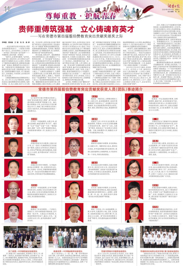 9月10日,常德市隆重举行庆祝第36个教师节暨第四届翦伯赞教育突出贡献奖表彰大会,我校陈淑平副校长及情感教育创新团队双双荣获第四届“翦伯赞教育突出贡献奖”。