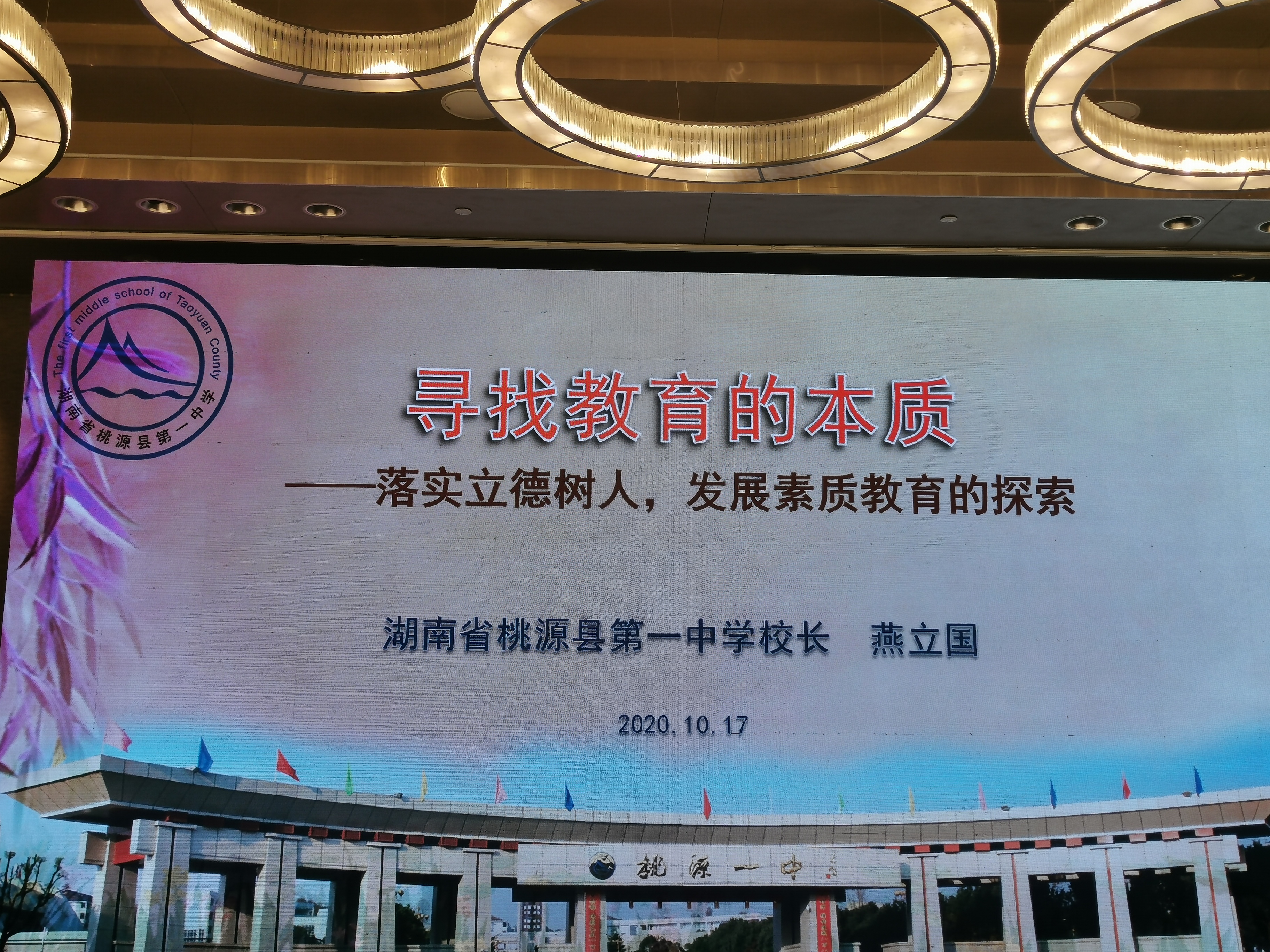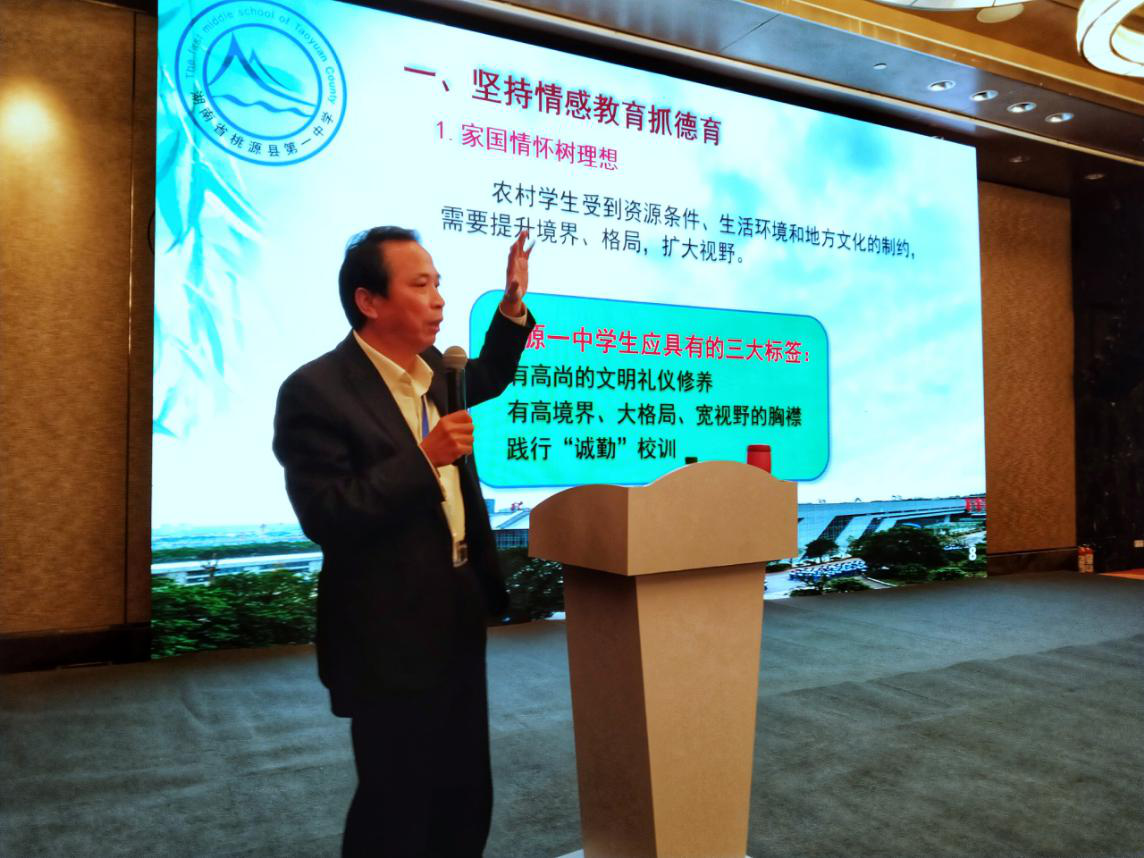 在名校长领航班高中校长学员专场,我校校长燕立国作了题为《寻找教育的本质》的发言,汇报了桃源一中坚持情感教育、瞄准素质教育、立足教育均衡等方面的经验,并介绍了桃源一中不断突破教育改革瓶颈、深入推进素质教育的创新性实践,分享了学校教育深化改革创新探索与成果,受到与会者的高度关注。