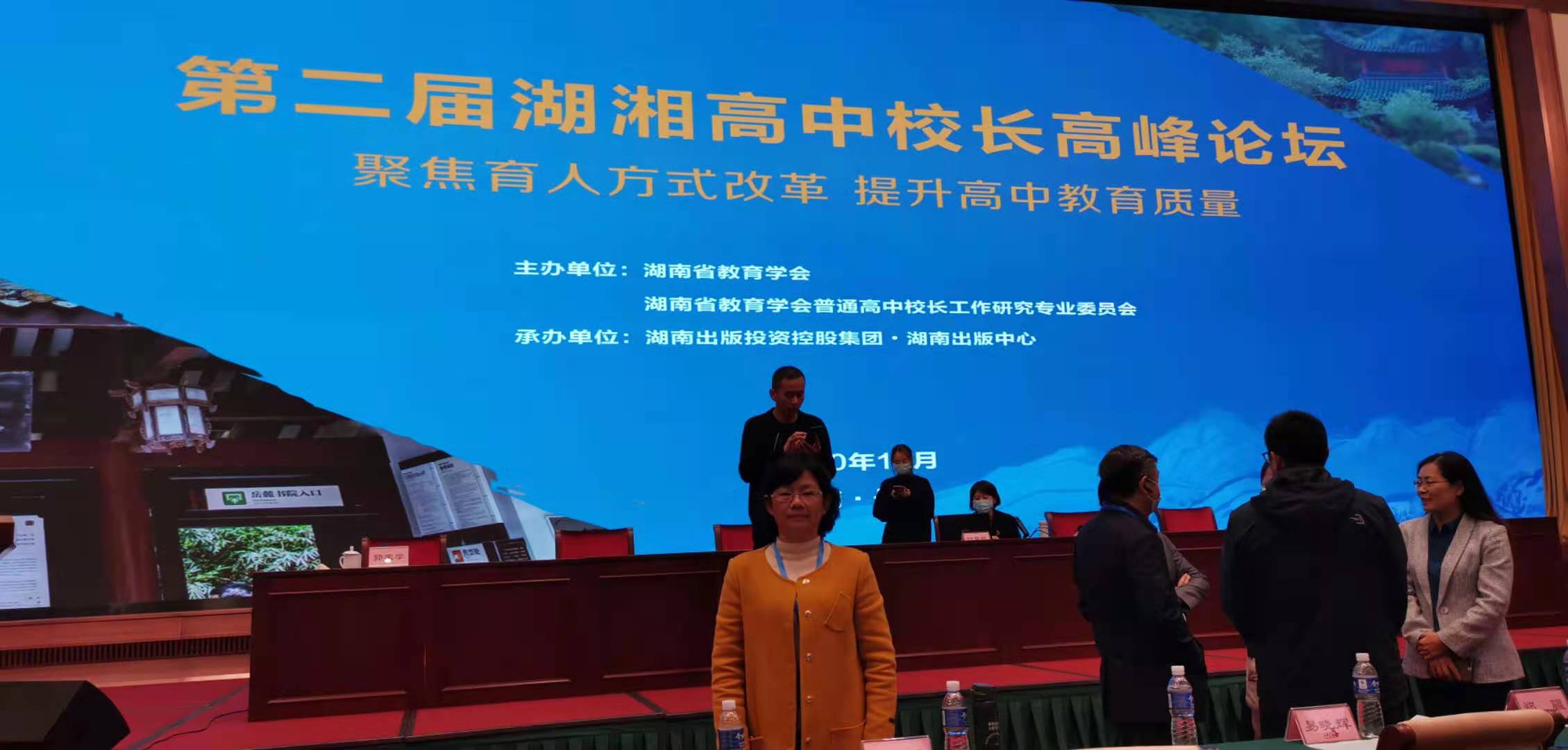 今年,湖南首次开展新高考模式下学业水平考试的合格性考试,高一年级全面实施新课程、使用新教材,加上普及攻坚任务,普通高中教育正处于三项重大改革同步推进的关键时期。为贯彻落实国务院办公厅《关于新时代推进普通高中育人方式改革的指导意见》精神,进一步提高普通高中阶段教育质量,湖南省教育学会于11月13-14日在长沙举办“第二届湖湘高中校长论坛”。桃源一中副校长陈淑平和教务科副科长单湘华参加论坛。