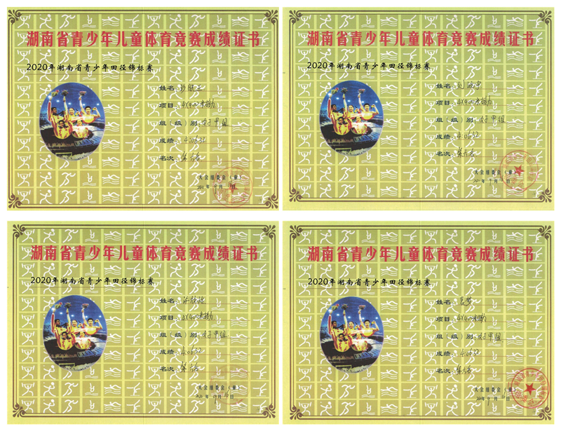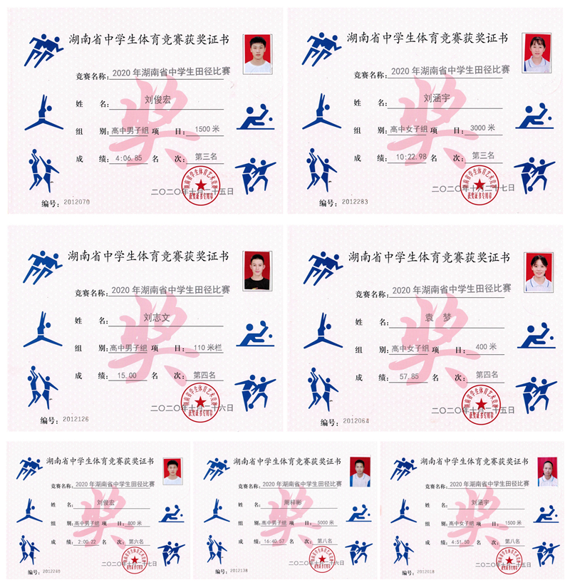 2020年湖南省中学生田径锦标赛我校选手获奖证书集锦