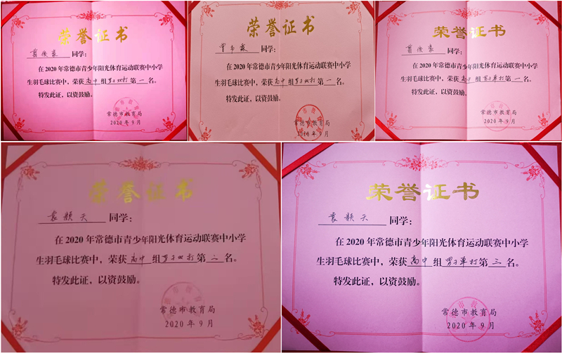 2020年常德市青少年阳光体育运动联赛中小学生羽毛球比赛获奖证书集锦