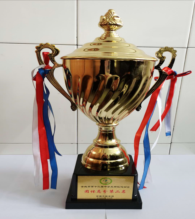 2020年常德市第十三届中学生田径运动会团体总分第二名奖杯。