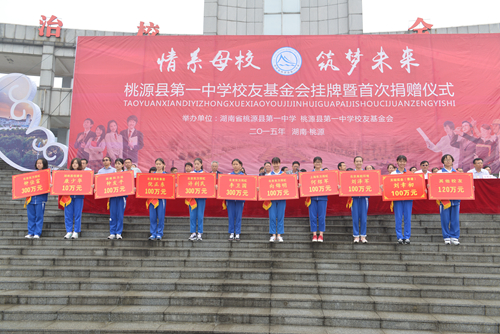 近年来,在各级党委政府和社会各界的关心支持下,桃源一中教育工作者无私奉献、奋力拼搏,取得了骄人的成绩,桃源一中已成为桃源县乃至湖南省的亮丽名片。在桃源一中杰出校友们的捐资兴教善举引领下,桃源一中一定会在全社会掀起尊师重教、捐资助教的浓厚氛围,把教育事业办得更好。