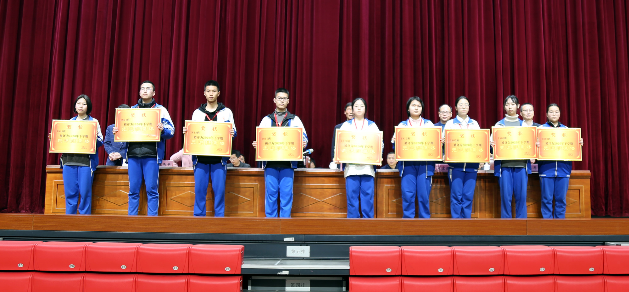 最后,副校长刘宏清宣读了2020年下学期优秀班级表彰通报,大会为优秀班级颁奖。