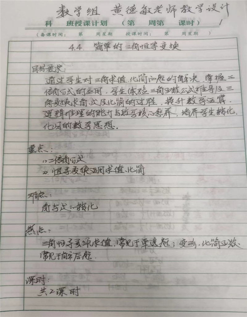 2022年下学期桃源县第一中学高三年级优秀教案案例——数学组黄德敏老师教案