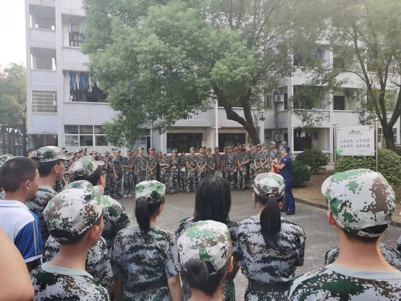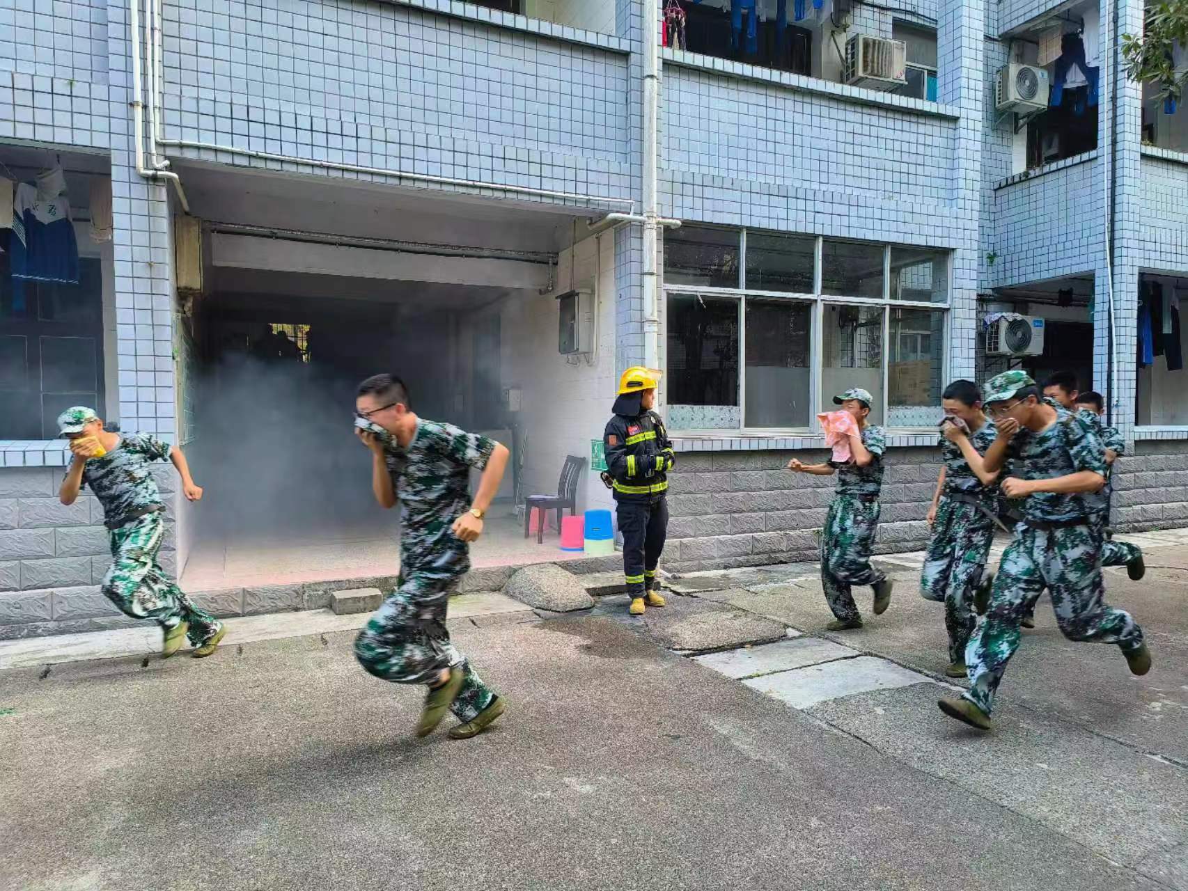 高一学生在宿舍进行消防演练