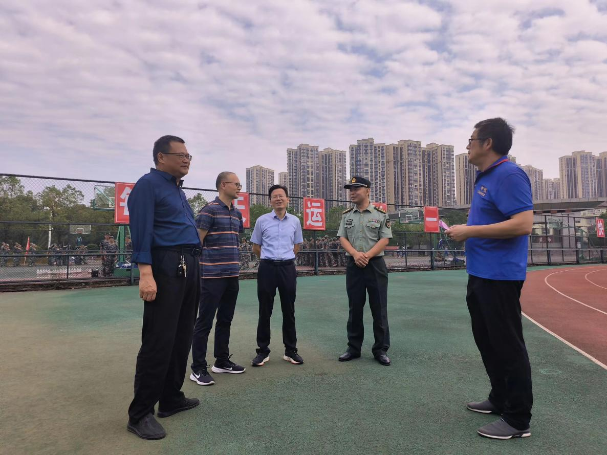9月27日上午,武装部部长谢瑞君、教育局副局长向钦林和基教股股长文子健一行赴我校视察指导2022级新生军训工作,副校长刘宏清、学生科科长彭迪斌和教务科副科长廖娅陪同考察组一行实地考察了我校新生军训开展情况,并向考察组介绍了军训工作安排,简要汇报了近年来我校军训工作取得的成果。