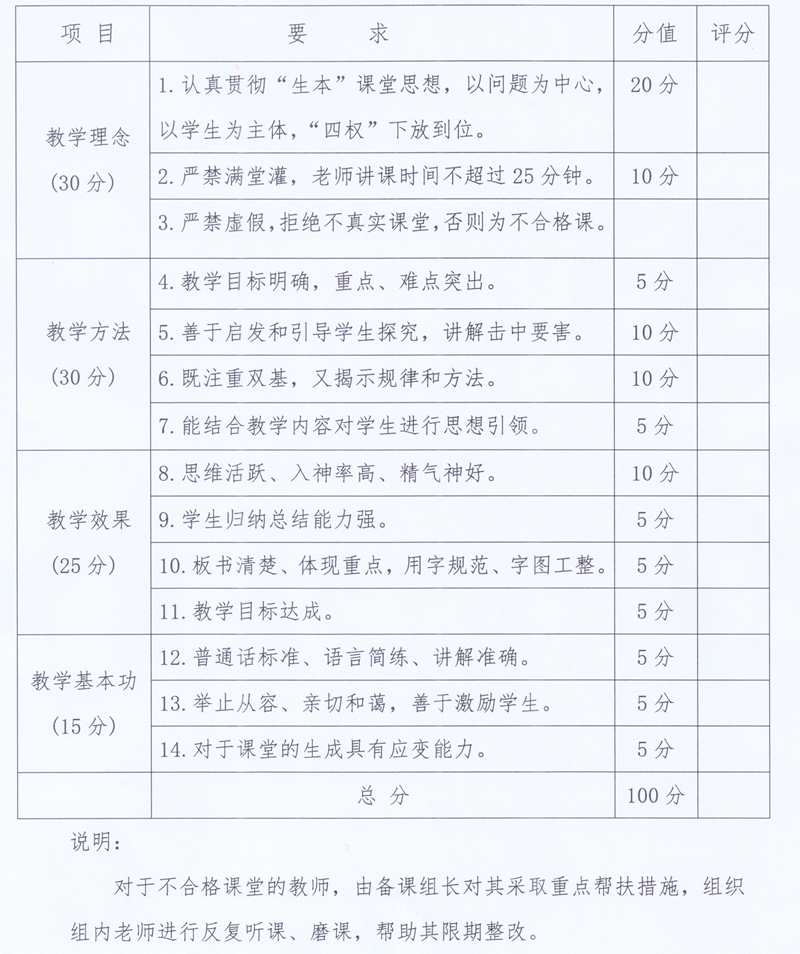 桃源县第一中学课堂教学评价标准(2020年11月版)